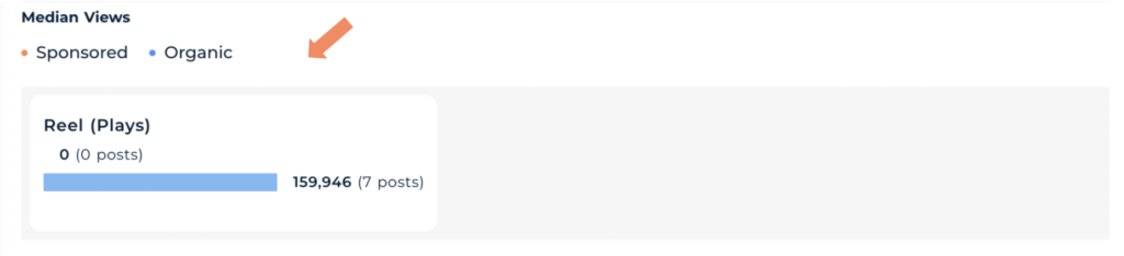 Median video views : This shows the median number of views the influencer receives on sponsored vs organic video content.