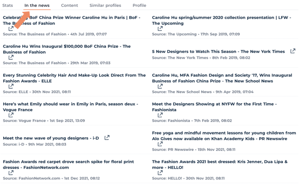 5. Another profile feature is the ‘In the news’ tab, which is there to keep you up to date on any publicity an influencer might be receiving.