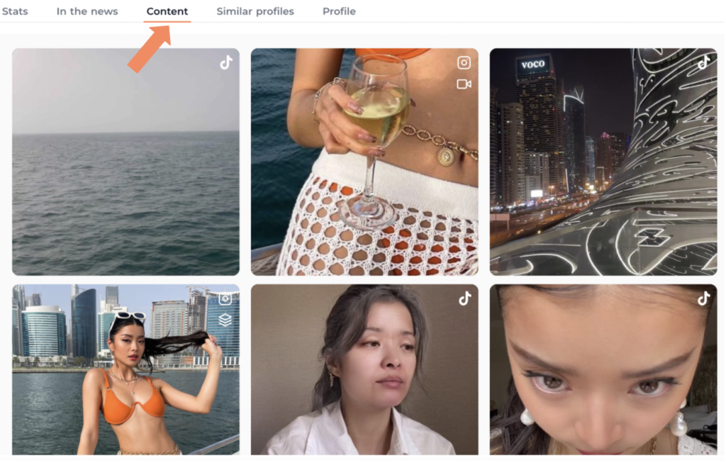 6. The ‘Content’ tab is there to provide a snapshot of an influencer’s current content.