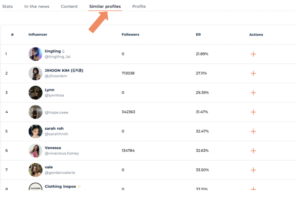 7. The ‘Similar Profiles’ tab offers a list of similar influencer profiles for when you are lacking inspiration!